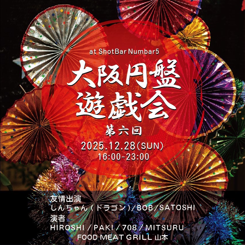 2025.12.29(Sun)大阪円盤遊戯会 @ShotBar Numbar5(北新地) 2025.12.02 2025.12.02 Post Share Hatena Pocket RSS feedly Pin it 今年も多くのDJ機会を頂きありがとうございました。今年最後のDJは昨年同様Numbar5での締めDJを。 2025.12.28(SUN)大阪円盤遊戯会@ShotBar Numbar5(北新地) 友情出演 しんちゃん(ドラゴン) BOB SATOSHI 演者HIROSHIPAKI708MITSURU FOODMEAT GRILL 山本 Info:大阪市北区曽根咲新地1−1−40ジロービル3F Post Share Hatena Pocket RSS feedly Pin it この記事のタイトルとURLをコピーする Bad Suns / Mystic Truth 前の記事